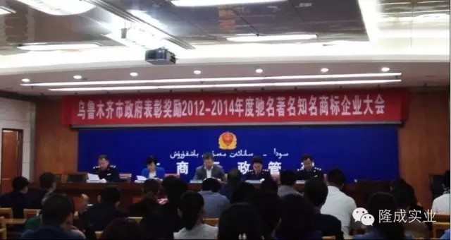 9月15日,烏魯木齊市“2012--2014年度馳名著名商標企業表彰大會”在市工商局隆重召開,隆成實業作為本次大會唯一一家同時榮獲“中國馳名商標”和“新疆著名商標”榮譽的企業,現場接受表彰獎勵。烏魯木齊市高峰副市長出席會議,并親自為獲獎企業頒發獎金。