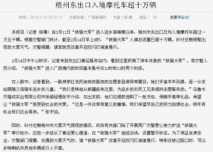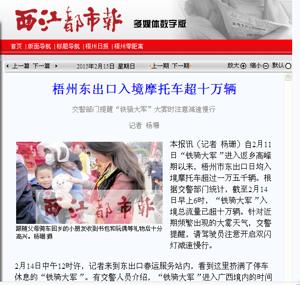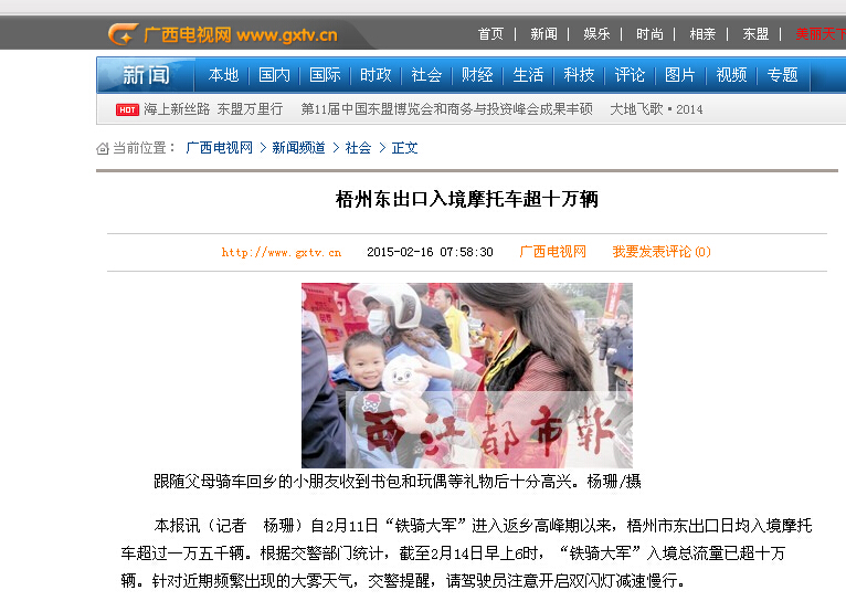 2015年金雪馳在廣西梧州春運站做“溫暖回家路”的公益大型活動,在金雪馳各位同事的努力后,本次溫暖回家路得到的社會各界的大力好評