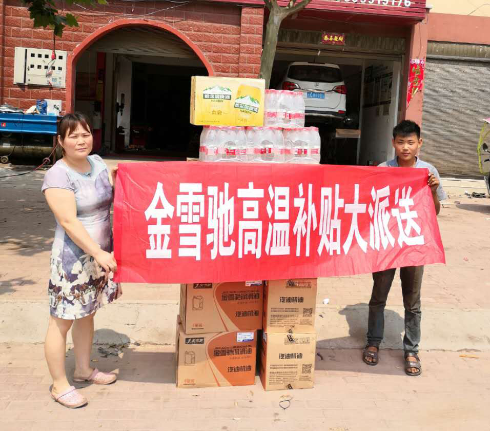 長時間高溫工作,體能消耗很大,極易出現中暑的情況。金雪馳送清涼小組成員與當地經銷商來到全國每一家金雪馳終端修理門店,為他們送去礦泉水、啤酒、粽子、飲料等夏季清涼物資,真真正正地把“清涼”送到一線。在終端門店,金雪馳送清涼小組成員還就如何在高溫天氣下開展作業及如何做好防暑降溫的小常識對汽修工們進行普及,目的是讓維修師傅們能夠在高溫環境下有更好的自我保護意識和能力,減少中暑等意外狀況的發生。