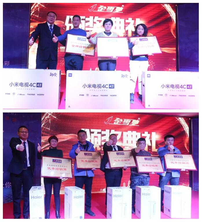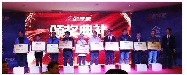 晚宴進程中,經銷商朋友們再次感受到來自金雪馳的驚喜饋贈。在金雪馳蘭州公司發展壯大的十七年歷程中,始終有一群精誠合作的經銷商客戶們與公司攜手相伴、不舍追隨;在2019年潑灑汗水的奮斗歷程中,金雪馳經銷商隊伍中涌現出一批業績不斷走高,推廣卓有成效的優秀經銷商,其中更不乏用銷量數據爭搶營銷頭籌的金牌經銷商,金雪馳蘭州公司在晚宴現場對他們予以祝賀并嘉獎,金雪馳也將在業精于勤、持之以恒中與他們共同進步!