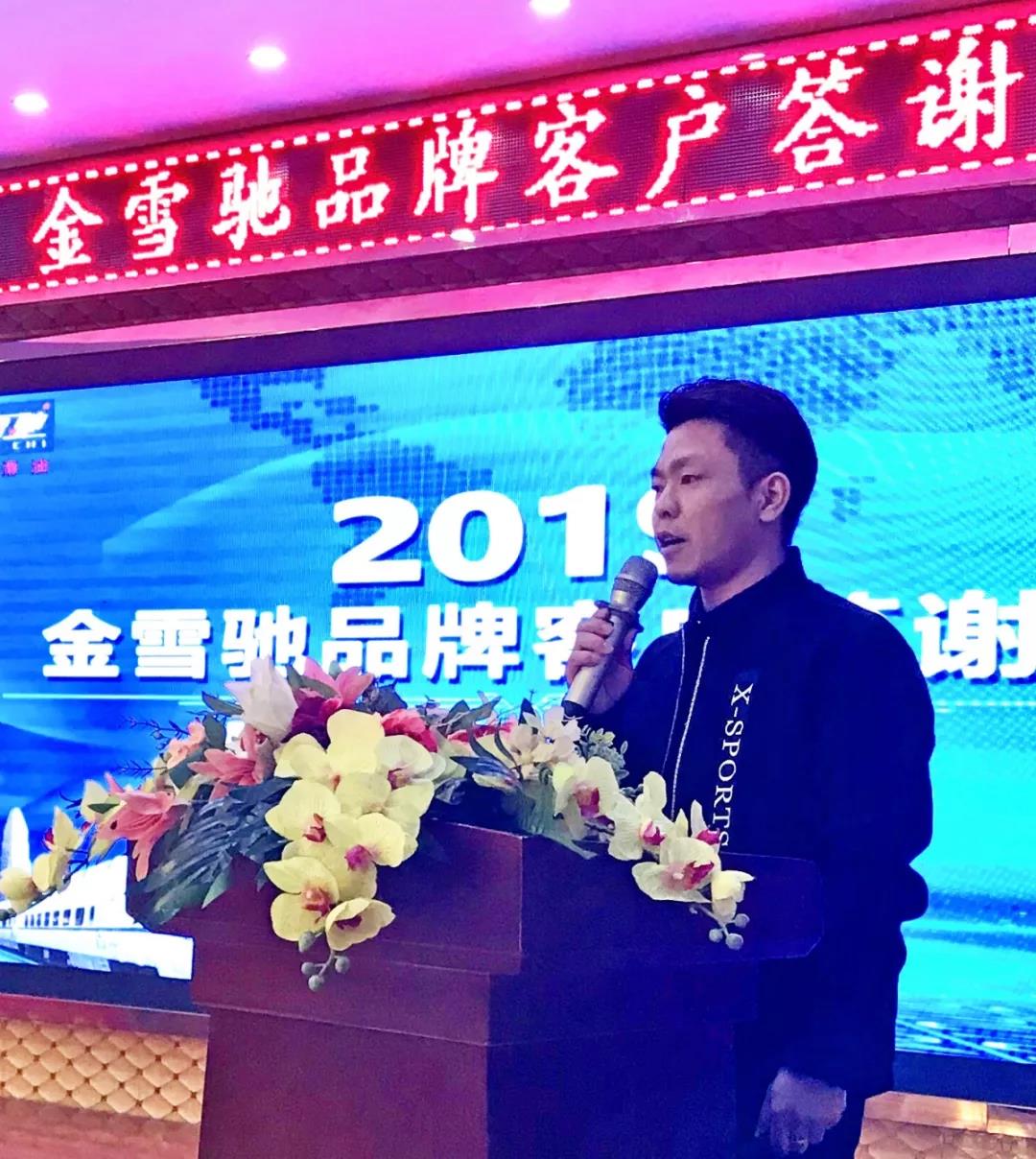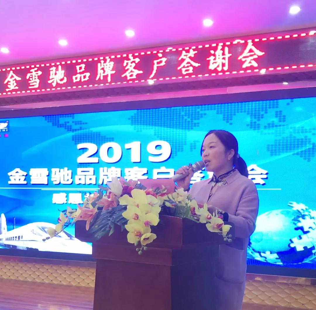 隨后,金雪馳泰州地區經銷商葉雅莉女士致辭。葉總首先感謝各位嘉賓的到來。她說,正是由于大家的辛勤努力,才構成金雪馳與客戶之間和諧相處、共贏發展的良好局面。金雪馳正以穩健的步伐逐漸發展壯大,我們與金雪馳的合作前景會更加美好,未來我們應充滿激情,鼓足干勁,力爭上游,共迎輝煌。