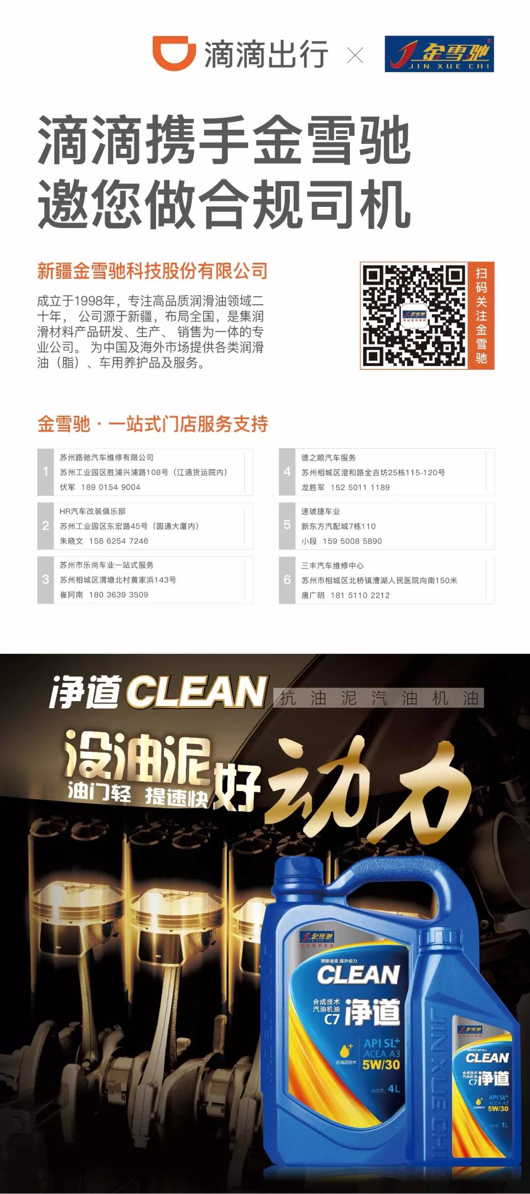 此次合作只是金雪馳在全國范圍內與滴滴開展戰略合作的開始。后期,金雪馳將在全國重點區域與滴滴開展持續合作,以高品質潤滑產品和全面快捷的用油服務助力全國車主安全出行。