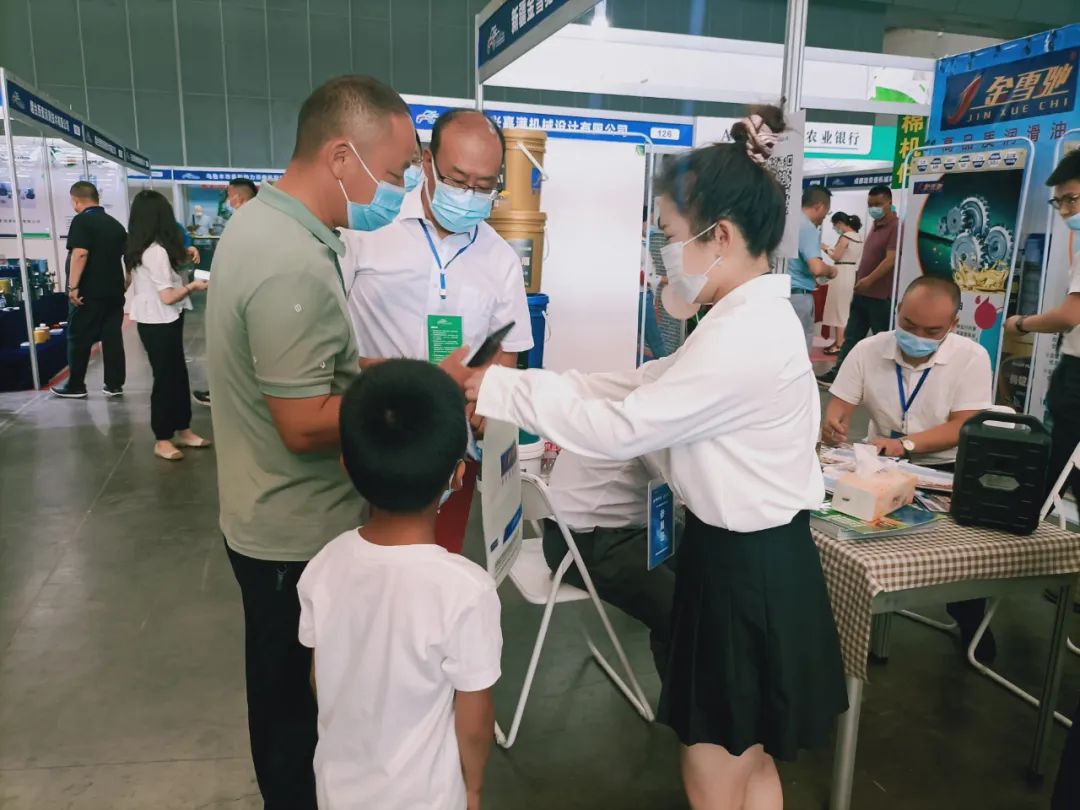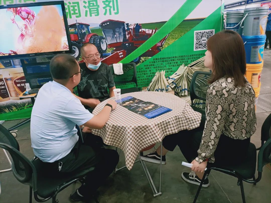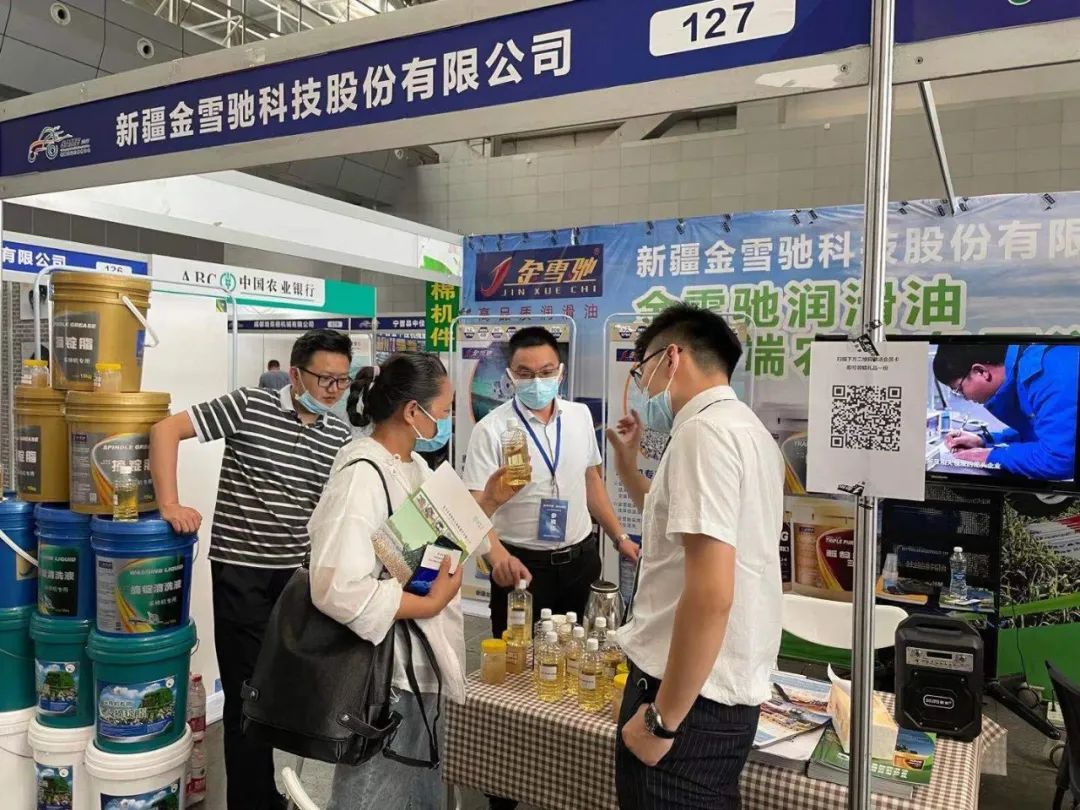 金雪馳采棉機(jī)專用清洗液、摘錠脂,勁馳、王牌系列等高端農(nóng)機(jī)產(chǎn)品引得眾多農(nóng)機(jī)配件廠家與國(guó)內(nèi)外客商蒞臨金雪馳展位咨詢、洽談合作。金雪馳股份公司總經(jīng)理宋廣輝、烏市公司總經(jīng)理張紀(jì)成攜金雪馳專業(yè)銷售、技術(shù)人員向咨詢客商們介紹了金雪馳產(chǎn)品及技術(shù)服務(wù),與客商們進(jìn)行了廣泛深入的交流。