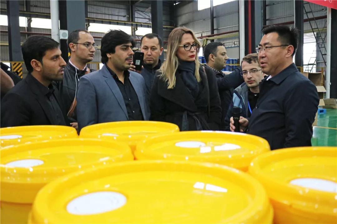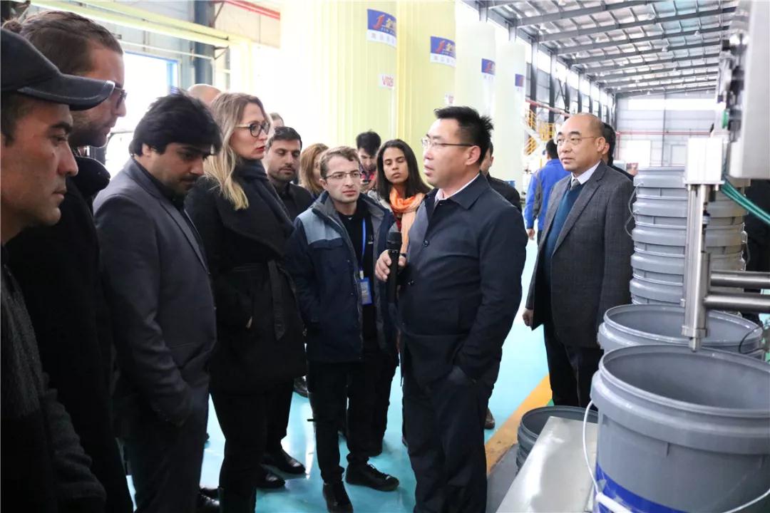 在整個參觀過程中,考察團一行對金雪馳馬鞍山公司干凈整潔的生產環境和先進生產設備贊嘆不已。當聽說金雪馳產品遠銷海外各國,在一帶一路沿線多國設有完善的銷售和售后服務網絡后,考察團成員們對金雪馳產生了極大的興趣,他們向現場金雪馳工作人員仔細詢問了公司產品、市場等基本情況并交換了名片,期待后期能與金雪馳實現長期合作。