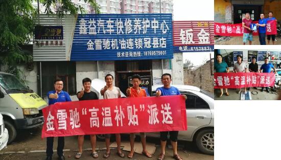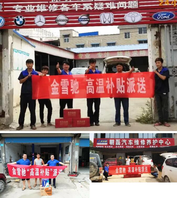 恒運汽修是金雪馳在開封地區的忠實終端,他們的維修技師在接過愛心小組成員送去的清涼用品時說:“天氣這么熱趕來,你們的關懷,讓我們干勁十足,我們一定會盡力為金雪馳客戶提供更加優質的養護體驗!”截止目前,金雪馳高溫補貼在全國范圍內已經派發200余家終端,約有600余名終端維修工受益。