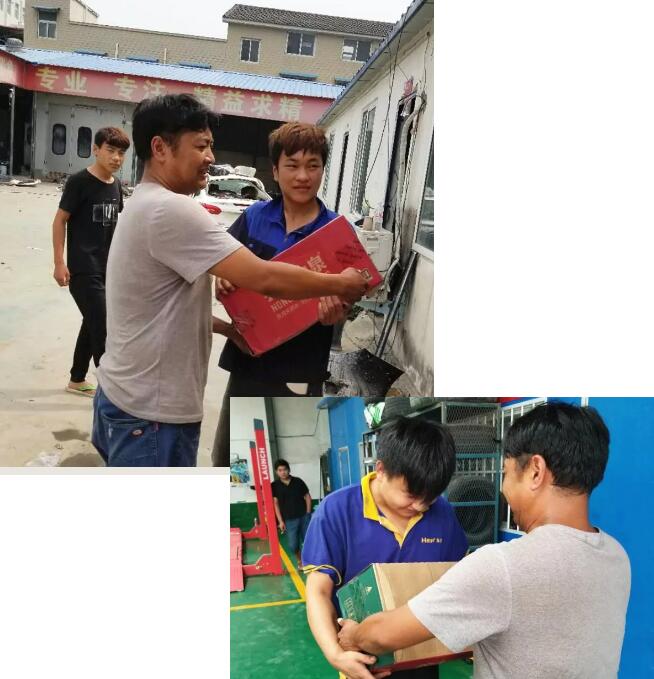 近日,金雪馳愛心基金小組攜手各地經銷商頂著烈日出發,分批前赴河南、山東等全國范圍內終端養護一線,親切慰問這里的維修工們,并為他們送去了飲料、啤酒等夏日清涼用品。