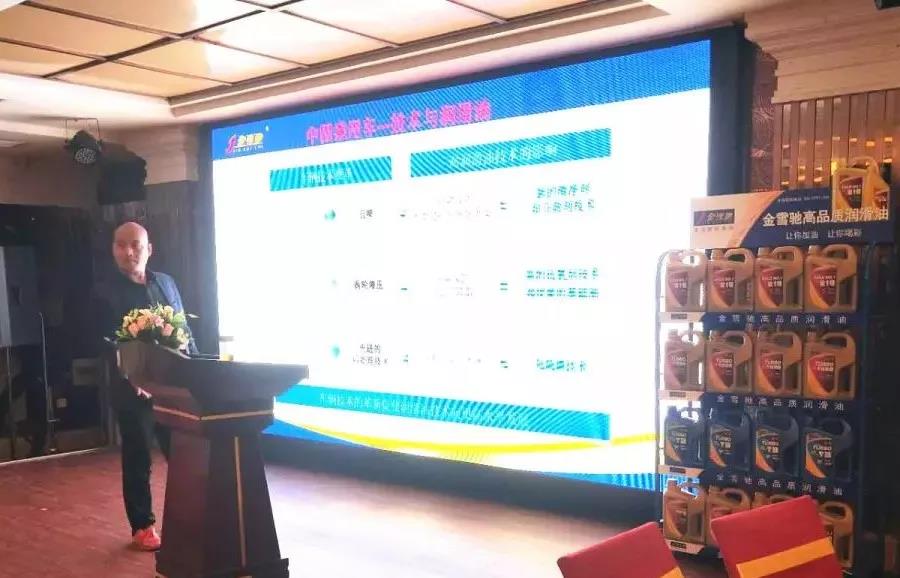 金雪馳潤滑油南陽地區(qū)經(jīng)銷商薛書峰為現(xiàn)場嘉賓做T族產(chǎn)品知識培訓(xùn)
