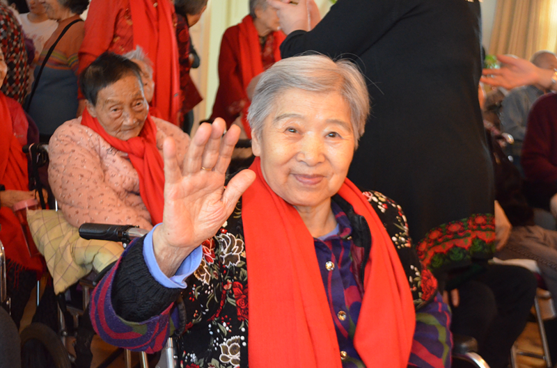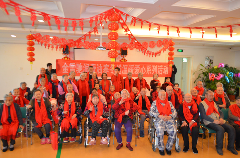 2月9日,金雪馳愛心小組來到開和老年公寓,他們早已對這里輕車熟路,無需工作人員指引,就來到了活動室。上次慰問的情景還歷歷在目,猶如昨日。老人們依舊熱情、健康、充滿活力?;顒邮依飶垷艚Y彩,喜氣洋洋,在金雪馳愛心小組到來以后,老人們更是喜笑顏開,金雪馳愛心小組成員拆開了為老人們精心挑選的紅圍巾,并為他們戴上,在收到圍巾的那一刻,老人們都露出了開心的笑容并紛紛表示感謝,祝愿老人們今后的日子紅紅火火,身體安康!