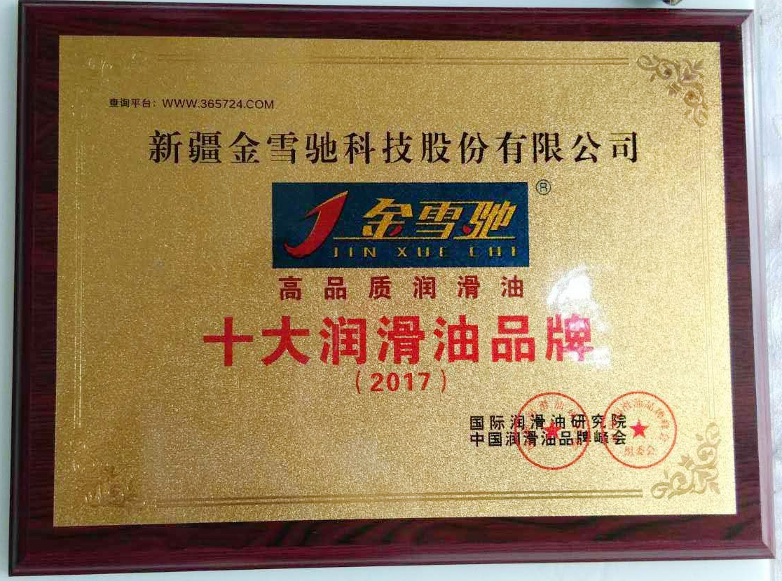 金雪馳榮獲“十大中國潤滑油品牌稱號”
