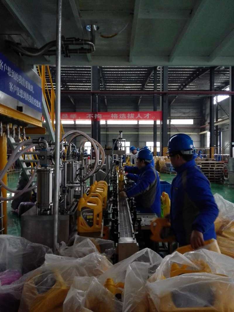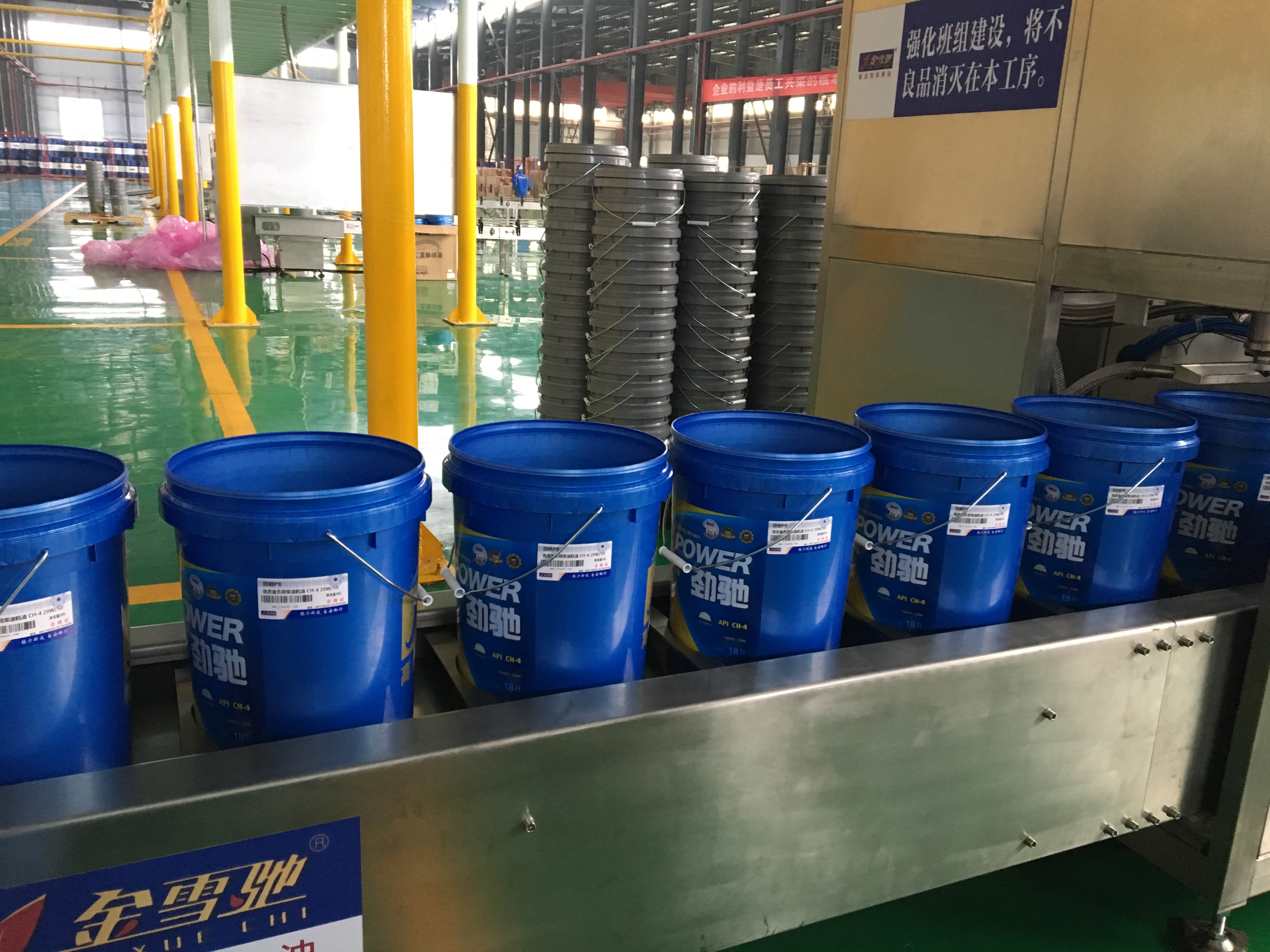 在金雪馳馬鞍山工廠潤滑油生產車間,調和區、罐裝區都在有條不紊的進行著工作,生產流水線上隨處可見忙碌的工人、擺滿的潤滑油生產桶和標貼……繁忙而有序的開展著每一道程序。