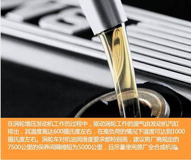 一般渦輪增壓器在發動機轉速達3500轉/分鐘時才會啟動,并且快速提升直到6000轉/分鐘。而發動機轉速越高,要求機油的抗剪切能力越強。只有這樣,才能使得在高轉速下機油的潤滑能力不下降。因此,在選擇機油時,應選擇優質機油,比如高檔全合成機油等。