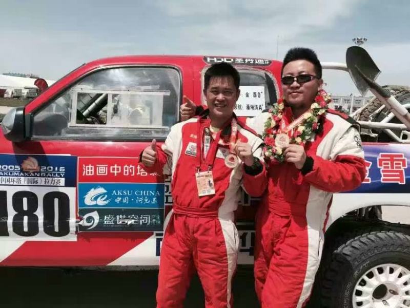 180號車組車手金磊、領航潘海濤,201號車組車手張硯忠、領航韓明,先后經歷沼澤、高溫、缺水、沙塵暴等地獄般試煉,在艱難的環塔賽程中,以金雪馳潤滑油為動力支撐,