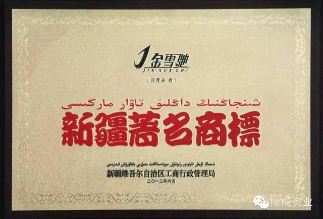金雪馳產品還通過了德國奔馳、瑞典沃爾沃、雷諾、康明斯等原車廠用油體系認證,并在國際行業標準下通過質量管理、環境管理、職業健康安全管理體系認證。近年來,“金雪馳”產品先后榮獲新疆著名商標、新疆名牌產品等多項榮譽, 2012年“金雪馳”商標被國家工商總局認定為“中國馳名商標”。2015年,在行業“奧斯卡”“LubTop2015中國潤滑油行業年度總評榜”活動中,金雪馳潤滑油榮膺“LubTop2015年度中國潤滑油行業民營品牌十強”殊榮。