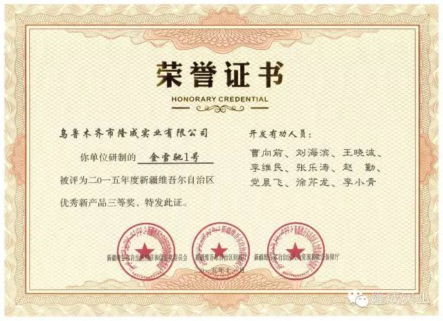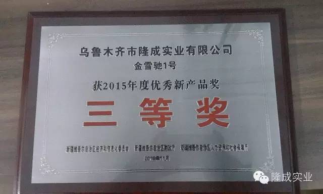 金雪馳1號榮獲“2015年度優秀新產品獎三等獎”
