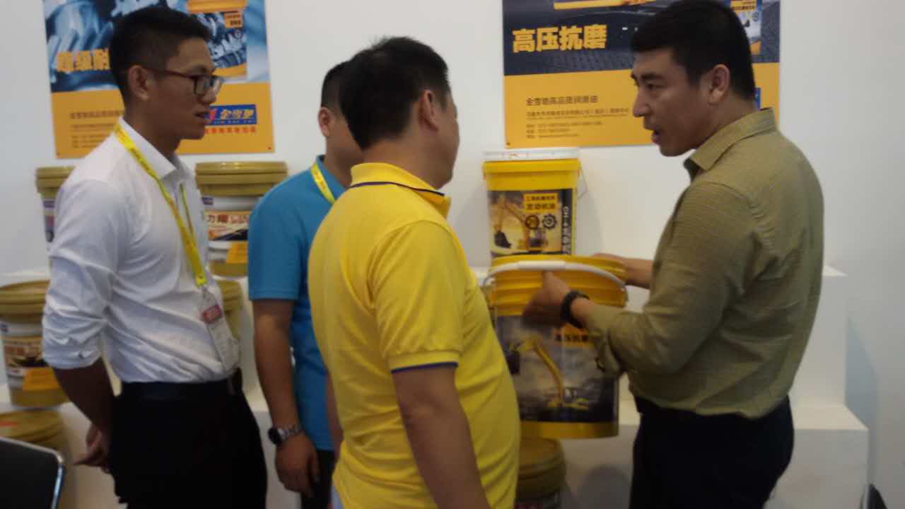 2015年9月22日,第十三屆中國(北京)國際工程機械、建材機械及礦山機械展覽與技術交流會 (BICES 2015),金雪馳攜“金十六”系列工程機械專用油包括高堿值柴油機油、高溫不流失的通用鋰基潤滑脂、六重防護發動機冷卻液、高溫重載變速箱傳動油、高壓抗磨液壓油、超級耐磨齒輪油等產品全新亮相,首日就得到國內外廣大客戶的青睞與支持,品質備受肯定。