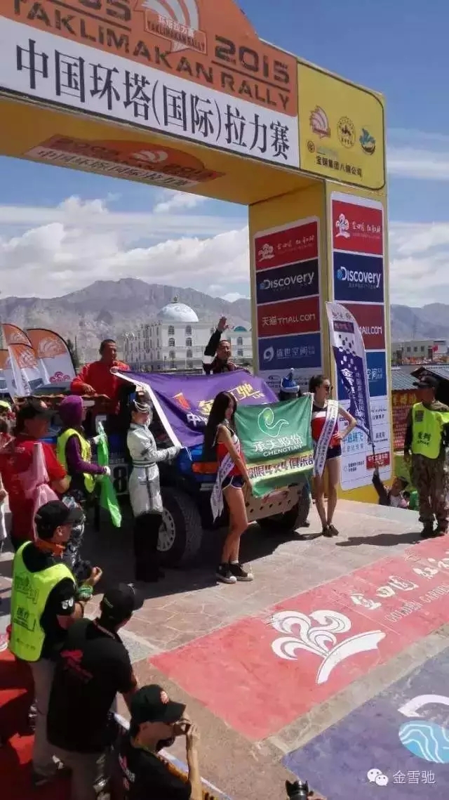 6月20日,2015中國環塔(國際)拉力賽暨中國越野系列賽新疆站在新疆巴音郭楞蒙古自治州和碩縣舉行開幕式及發車儀式,包括金雪馳助力的承天車隊在內的56支車隊的近200輛賽車參加了當天的排位賽。