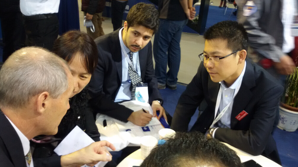 國(guó)外客戶在金雪馳展臺(tái)深度溝通、洽談合作