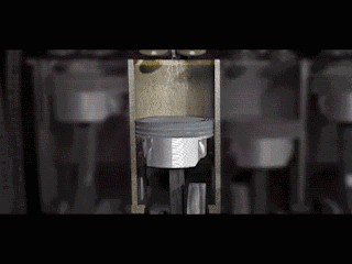 上圖為正常四沖程發動機的工作過程,壓縮行程中的活塞到上止點時,火花塞點火,正好讓活塞下行。