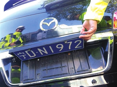 上面有人為了防止違規(guī)行為被拍,用電子狗;下面就有司機為了防止被攝像頭拍到違法行為扣分,在車上裝了換牌器,俗稱就是套牌。安裝這個的后果大家應(yīng)該心知肚明,這屬于嚴(yán)重違法行為。在新修訂的《道路交通安全法》中,除了“套牌車”外,涉及偽造、變造或使用偽造、變造的機動車登記證書、號牌、行駛證、駕駛證等使用假牌假證的違法行為,其處罰標(biāo)準(zhǔn)都是對當(dāng)事人處15日以下行政拘留,并處2000元以上5000元以下罰款,并扣車。根據(jù)公安部令111號規(guī)定:使用偽造的機動車號牌、駕駛證的將被記12分。這意味著,當(dāng)事駕駛?cè)顺艘邮苄姓辛艉透哳~度罰款外,還會被記滿12 分。