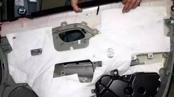 車(chē)門(mén)或車(chē)身內(nèi)有許多地方都有填充物、隔音棉,以達(dá)到隔振降噪的目的。普通車(chē)門(mén)內(nèi)幾乎沒(méi)有隔音棉,關(guān)門(mén)聲難聽(tīng),所以車(chē)主一般會(huì)在后期加裝隔音棉。另外,在防水層的塑料布上貼有發(fā)泡材質(zhì),也達(dá)到了一定的降噪作用。