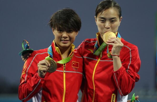 吳敏霞和施廷懋跳水女子雙人3米跳板獲得第二金