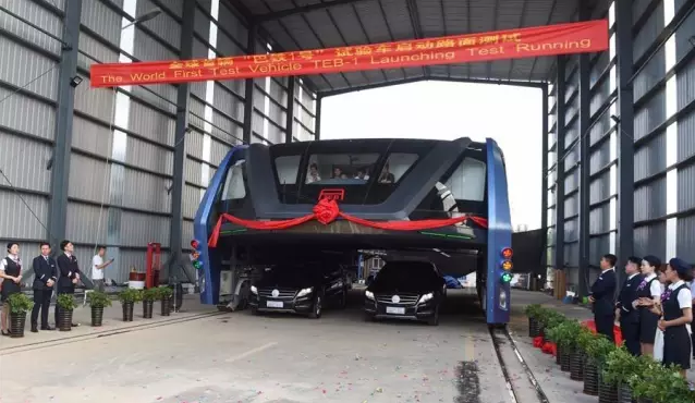 我國自行設計研制的“空中巴士”——巴鐵1號試驗車,在河北秦皇島北戴河區啟動綜合試驗。車廂長22米,寬7.8米,高4.8米,載客數300人。車廂內有多個液晶電視屏幕,還安裝4個動態地圖,下層鏤空部分可行駛高度2米以下的車輛。
