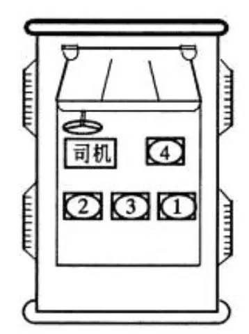 由專職司機駕駛時,座位順序應當依次是:后排右座、后排左座、后排中座、副駕駛座;排序方式見下圖