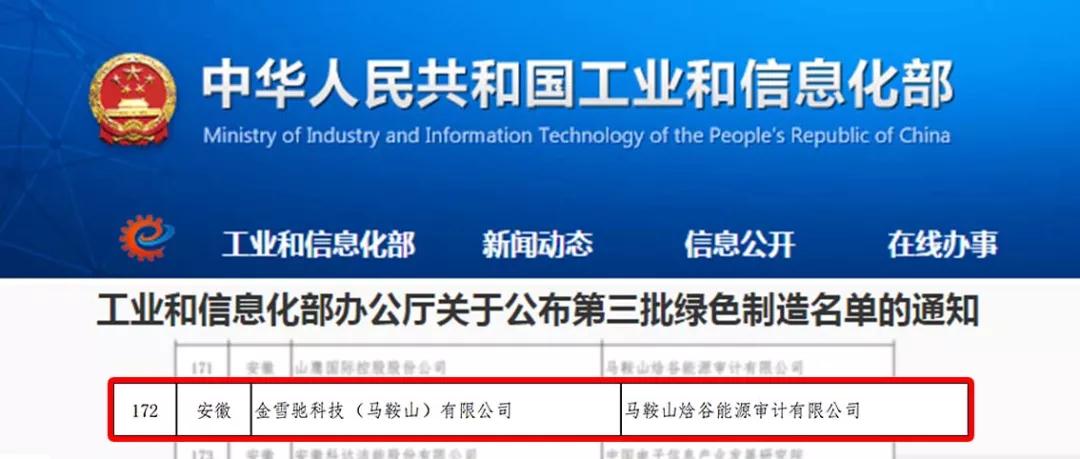 【聚焦】金雪馳科技(馬鞍山)有限公司入選第三批*********綠色工廠名單