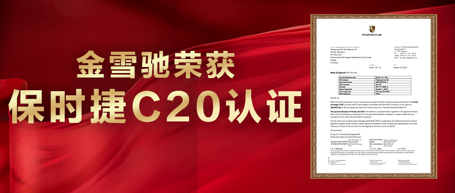 喜報 | 金雪馳1號API SP ACEA C6 0W-20榮獲保時捷C20認(rèn)證!