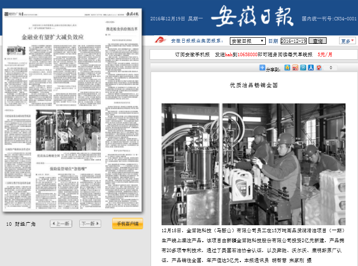 隨著金雪馳科技(馬鞍山)有限公司15萬噸高品質潤滑產品項目的正式投產和2017年代理商大會的完美落幕,金雪馳品牌成為最近媒體關注的焦點。安徽日報、馬鞍山日報、中國化工報、安徽廣播電臺、馬鞍山電視臺、中國潤滑...