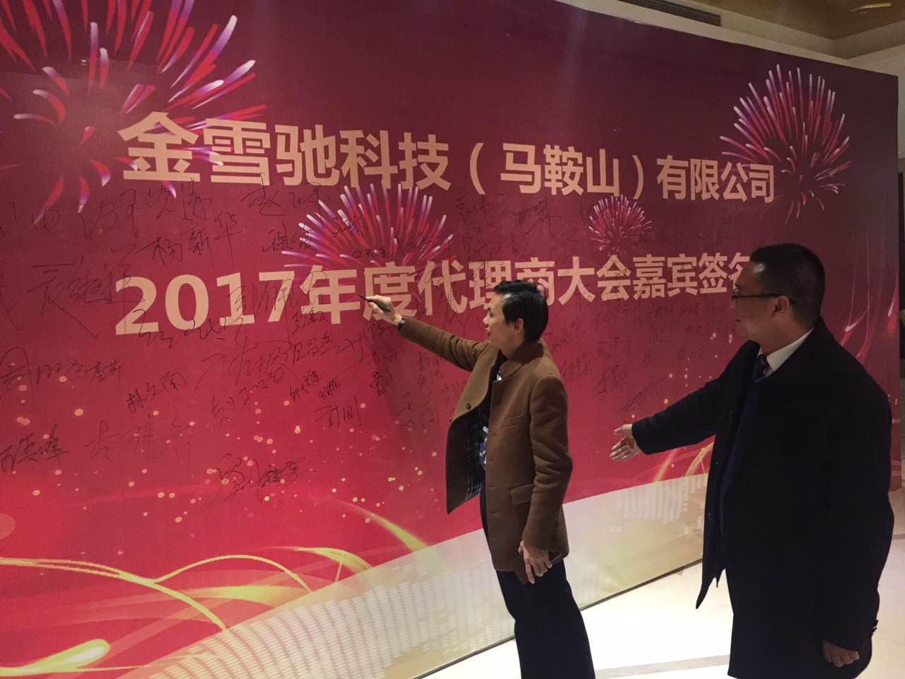 攜手共進 再創輝煌—— 新疆金雪馳科技股份有限公司全國代理商大會盛大召開 2016年12月18日,新疆金雪馳科技股份有限公司2016年度金雪馳品牌代理商會議在馬鞍山甄山麗景酒店隆重召開,會議邀請了200多家優秀代理商代...