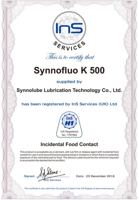 近日,金雪馳科技股份有限公司旗下的Synnofluo K 500、Synnofluo K 240兩項潤滑脂產品順利通過歐洲Ins的H1食品級認證。食品級潤滑產品是指 對人體無害的潤滑產品;可使用于食品、藥物等生產的制造設備上。食品級潤滑...