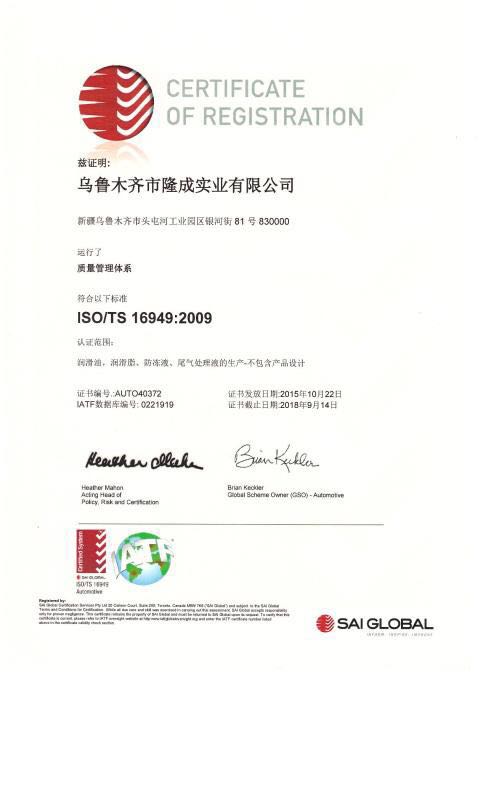 金雪馳順利通過ISO/TS 16949:2009質量認證,踐行民族潤滑油高品質承諾