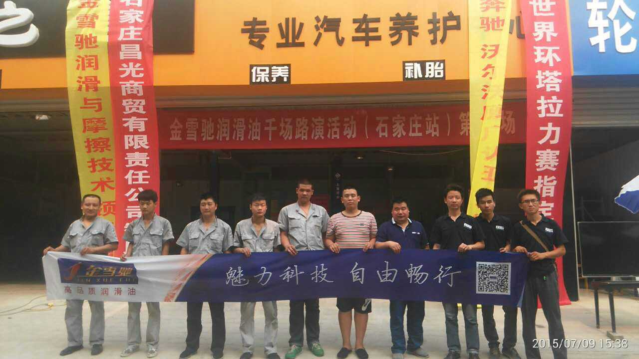 2015年7月8-10日,為期三天的“金雪馳潤滑油‘千場路演計劃’十萬人品質見證之旅”轉戰河北,在石家莊市隆重拉開帷幕,本次路演主題為“感恩回饋——金雪馳買油送油(買機油送發動機清洗油),活動現場還送免費洗車服...